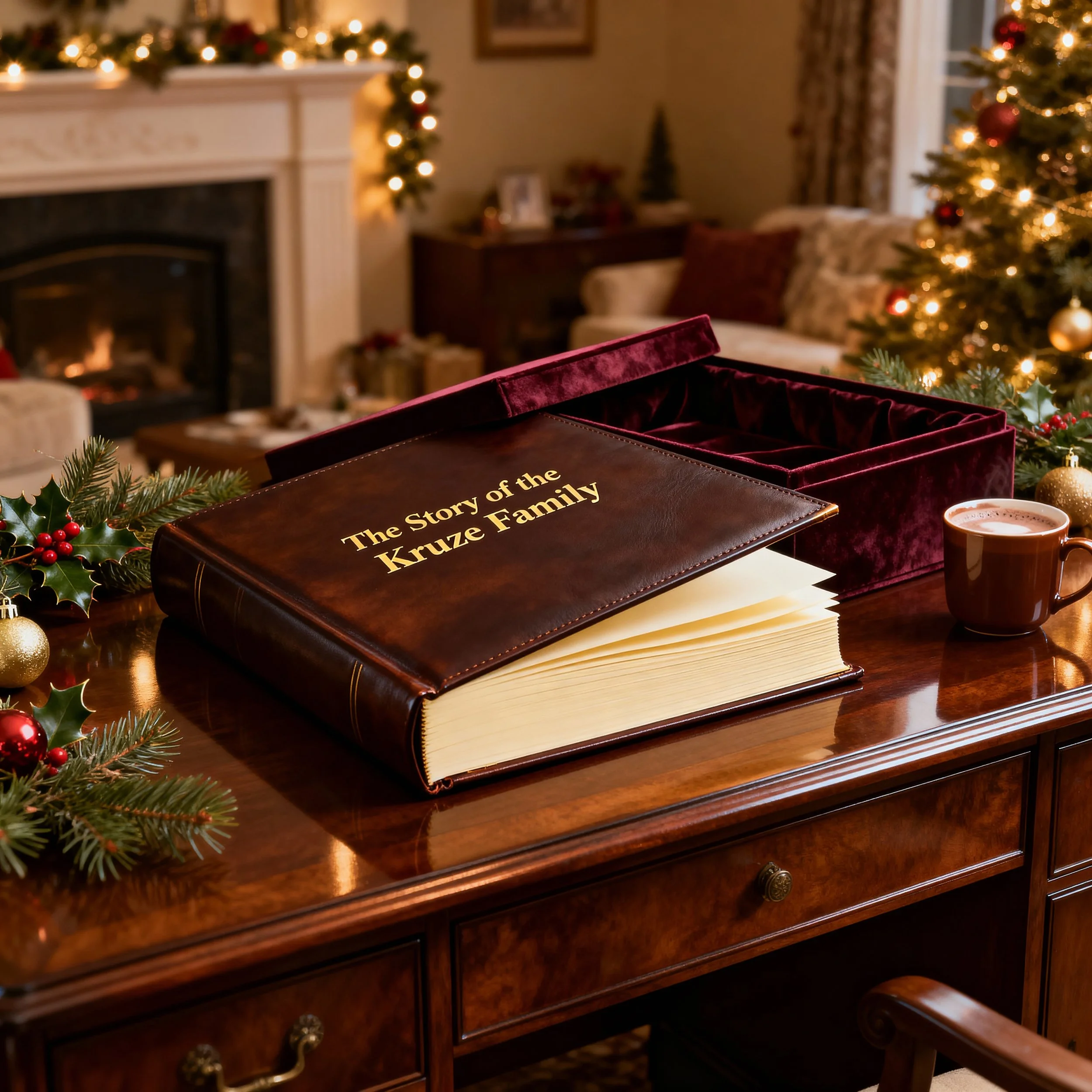 This holiday, give a cozy, meaningful treasure. Your luxury family history book is a heartwarming heirloom perfect for Christmas morning. Bound in fine materials, it gathers the family's story and memories into one beautiful volume—a gift that sparks nostalgia and connection around the fire.