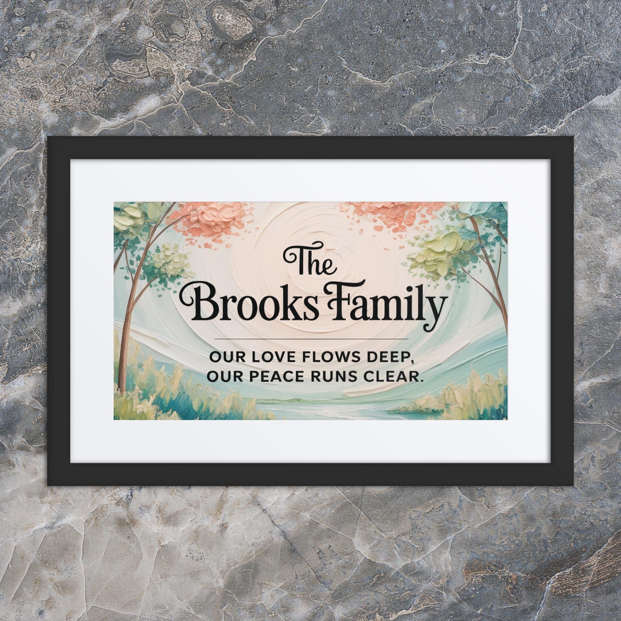 Brooks Family Framed Name Plaque | Our Love Flows Deep. Our Peace Runs Clear.