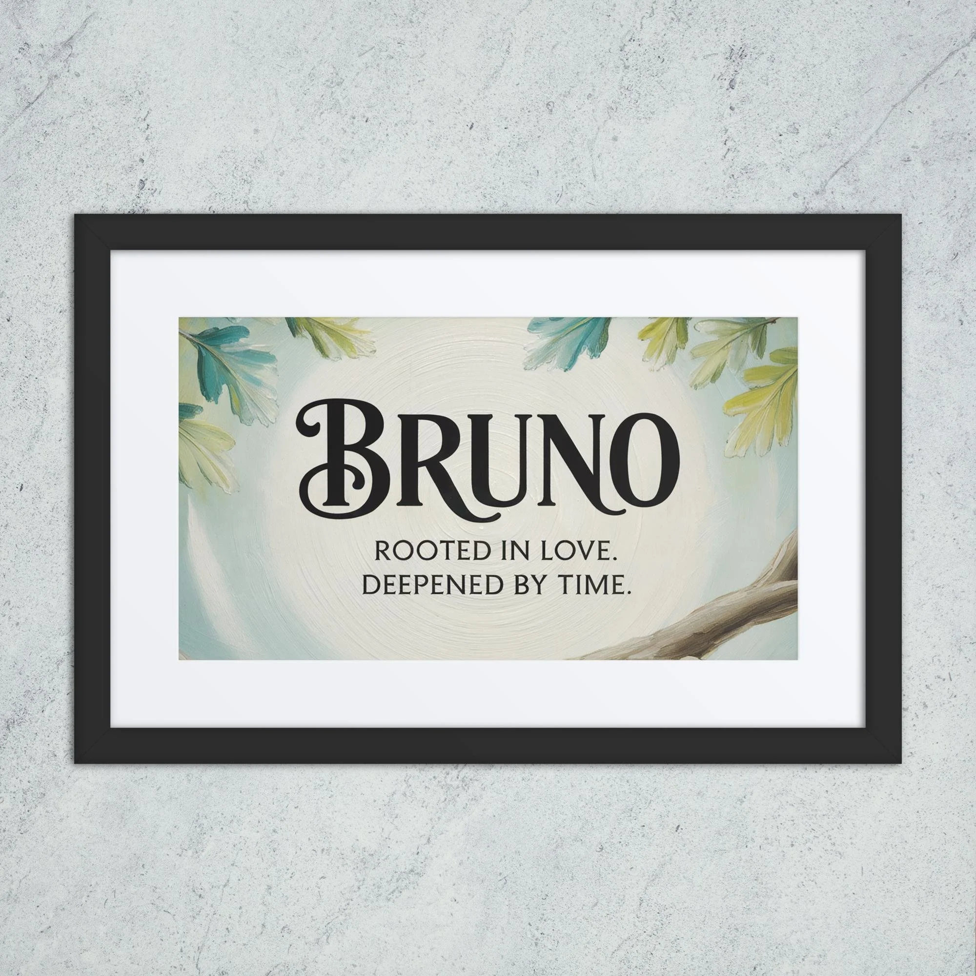 Bruno Family Framed Name Plaque | Rooted in love, Deepened by time