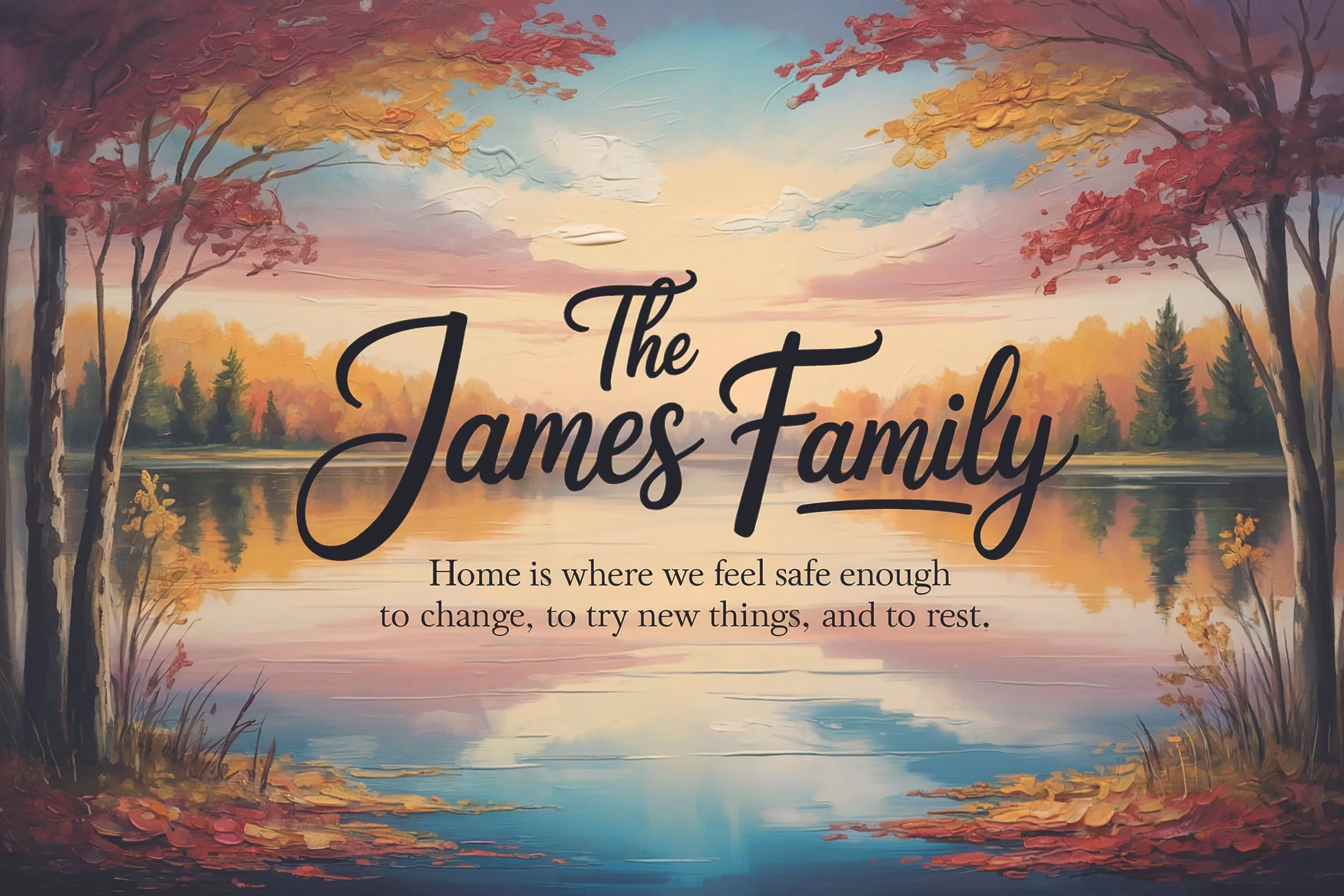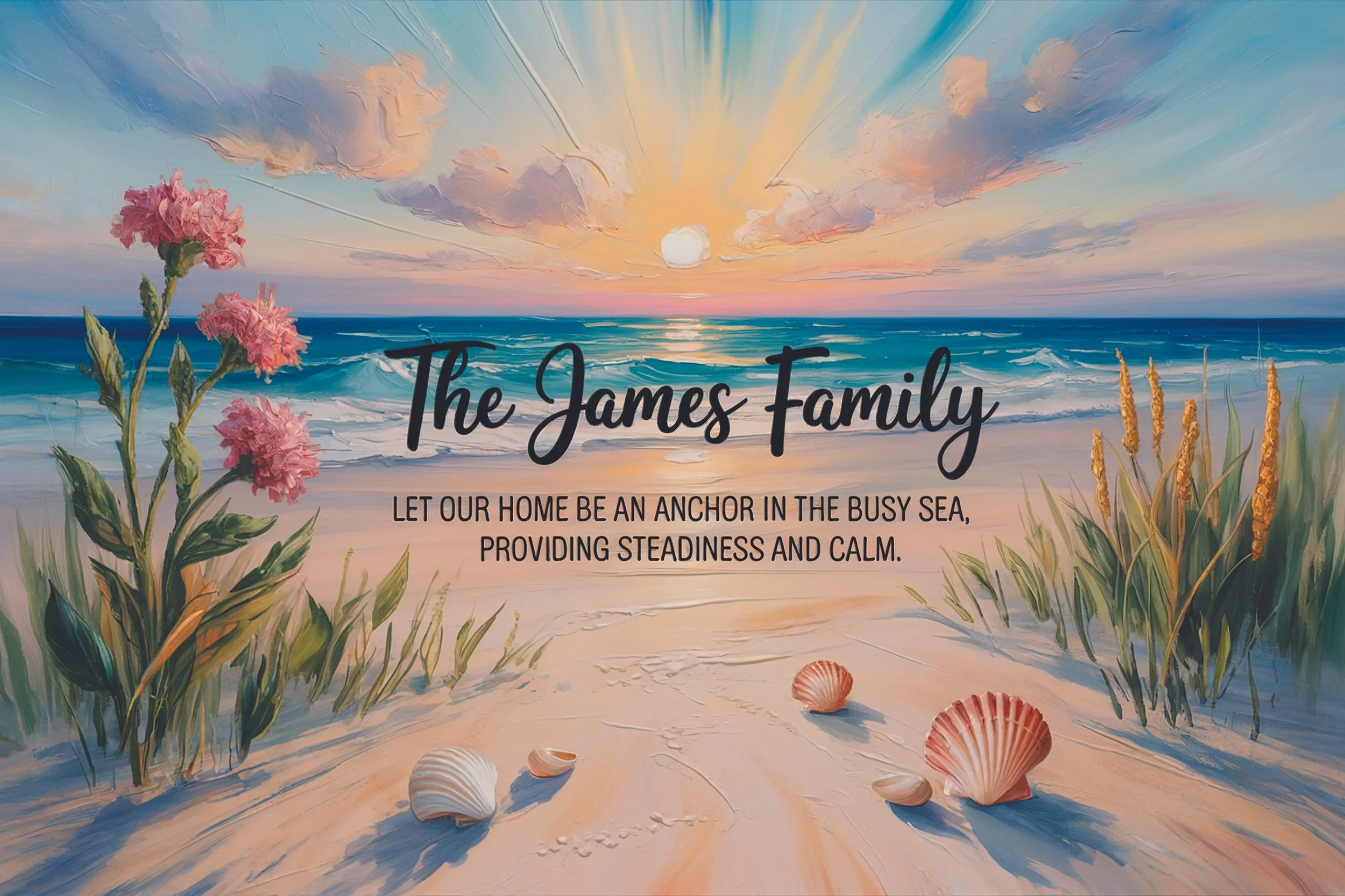 The James name traditionally signifies dependability, steadfastness, and a commitment to familial stability—qualities that perfectly describe a home built for safe harbor. The James Family Framed Name Plaque proudly features the intentional and poetic quote: "Let our home be an anchor in the busy sea, providing steadiness and calm." The meticulously printed quote overlays a beautiful oil painting design print, lending the artwork a sophisticated visual richness that symbolizes the deep-rooted security of their safe harbor.