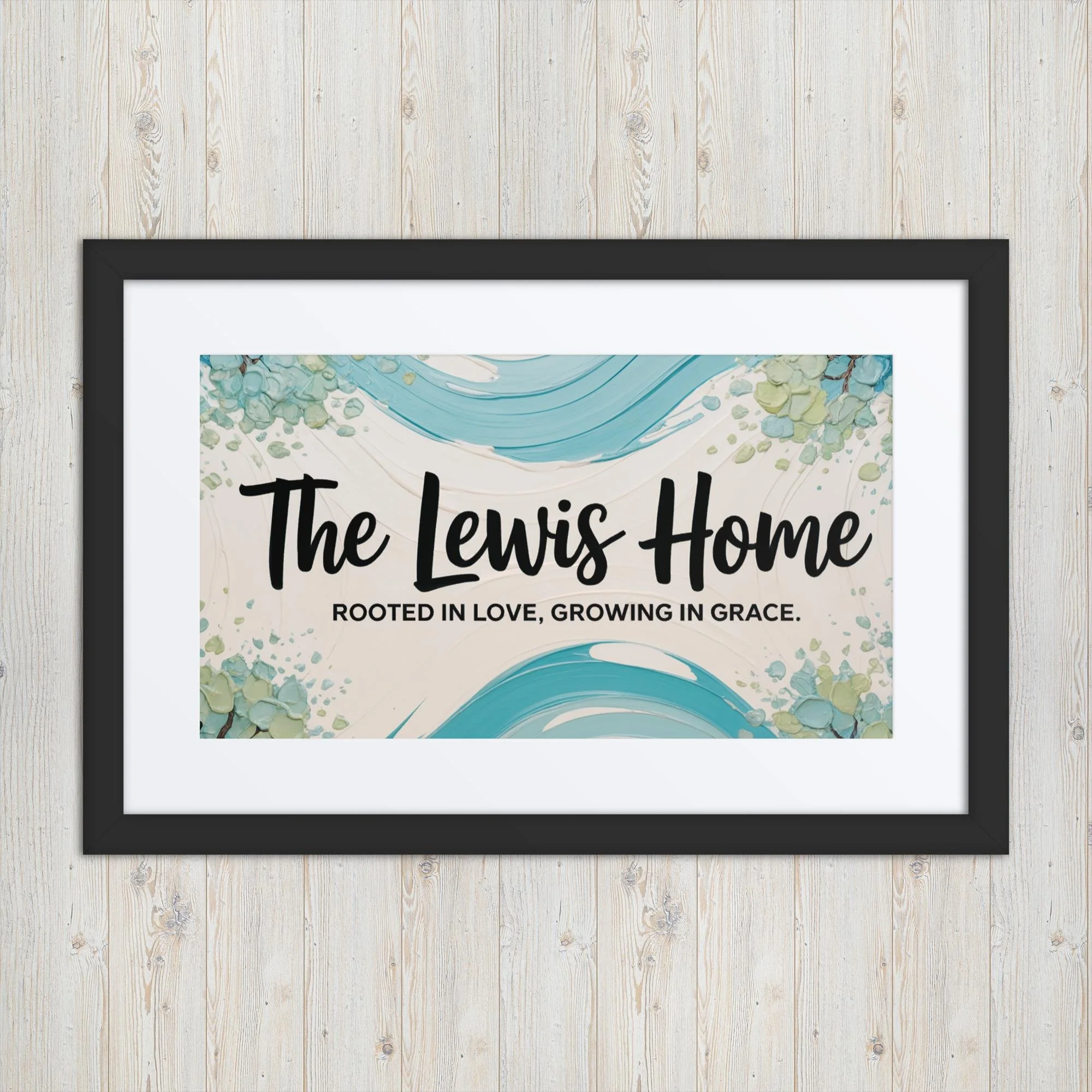 Lewis Home Framed Name Plaque: Rooted in Love, Growing in Grace