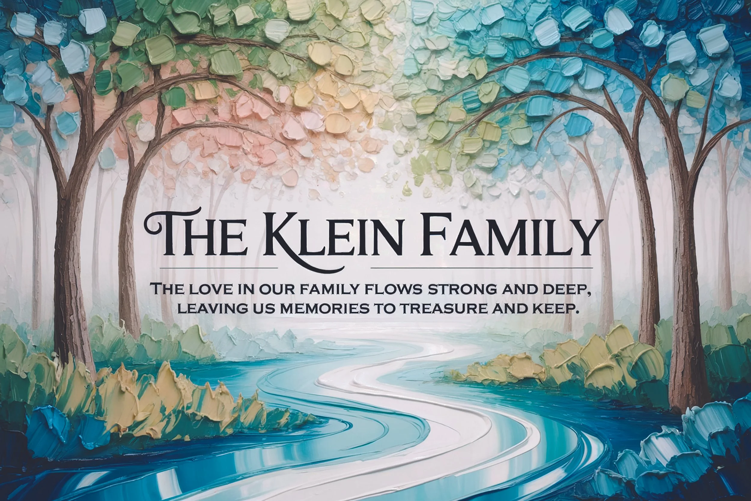 The Klein name reflects strength, continuity, and deep familial affection. The Klein Family Canvas Plaque features this powerful, resonant quote. This profound statement is reproduced with the vivid texture of an oil painting, elegantly set against a background featuring an artistically rendered design with rich brushwork detail. The composition creates a visually stunning piece that reflects the enduring nature of their love.