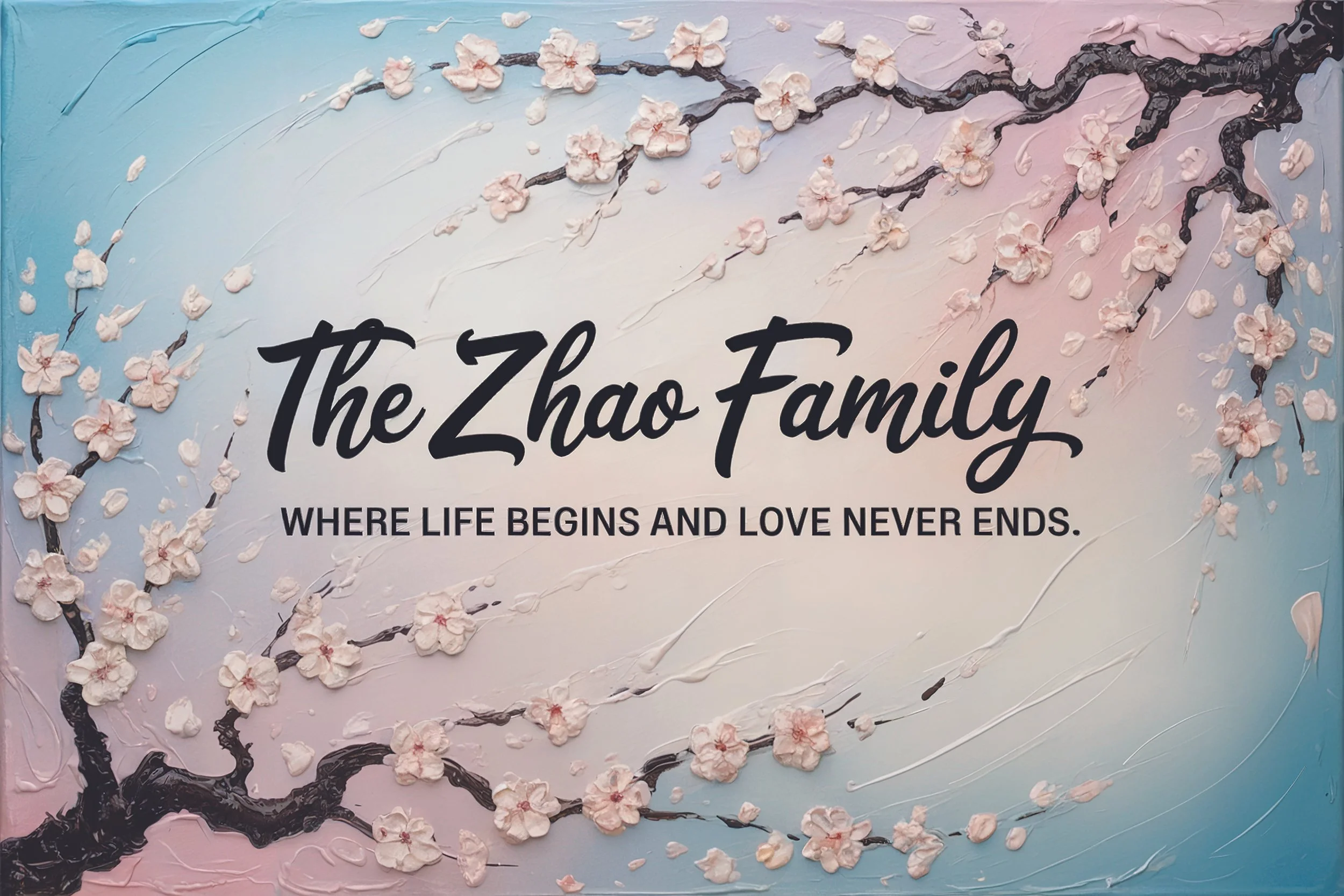 The Zhao Family Framed Name Plaque proudly features the heartfelt and timeless quote: “Where life begins and love never ends.” The design is a print in an oil painting style, giving the artwork a rich, textured appearance that symbolizes the depth, warmth, and timeless beauty of family love. Together, the words and design capture the permanence of home and the continuity of generations bound by care.